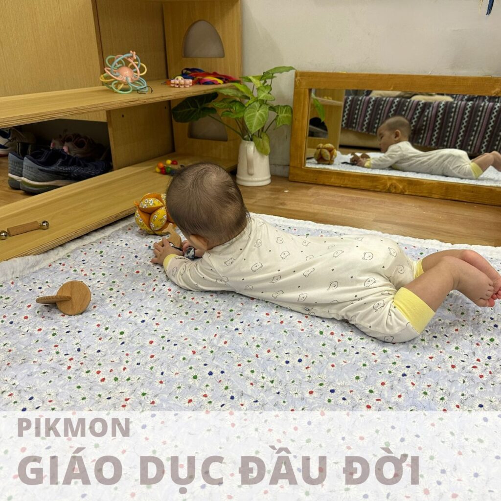Mình không biết điều này cho đến khi sinh M. Sau khi học xong Mon 0-3, nghiên cứu các tài liệu Pikler, RIE. Thường thì chúng ta sẽ không bao giờ nhìn thấy điều này ở bé sơ sinh nếu như không biết trước về điều đó, bởi vì, em bé sơ sinh quá bé bỏng ‘yếu ớt’ khiến cho mọi người lớn đều cảm thấy cần luôn ôm ấp vỗ về, nói chuyện, cười đùa….trong những khoảng thời gian thức ngắn ngủi của em như thể sợ em bé sẽ buồn chán. Nhưng cũng chính vì vậy, em bé không có cơ hội được thưởng thức sự riêng tư này.