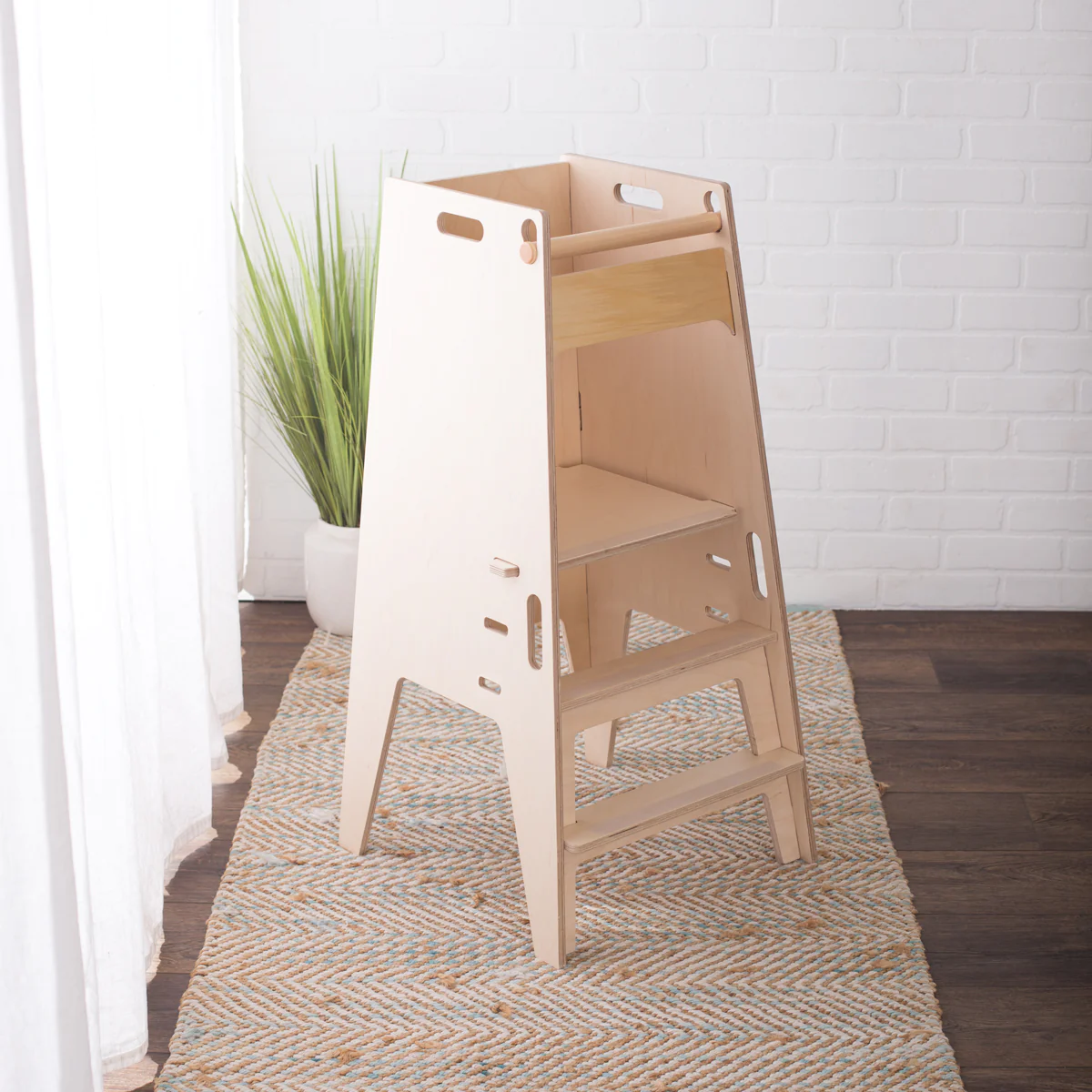 Tháp được thiết kế kiểu choãi ra ở phần đế giúp tối đa sự vững chãi. Tuy nhiên chúng tôi luôn khuyến cáo người lớn cần để mắt đến trẻ khi sử dụng tháp tự lập này.