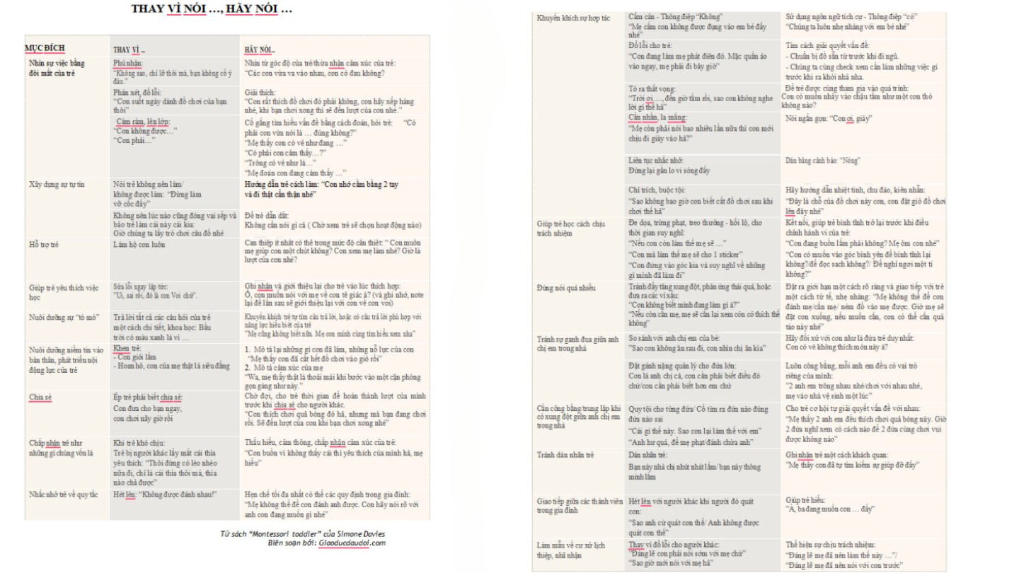 Để giao tiếp, phản hồi một cách tích cực với con, mời bạn tham khảo bảng ‘Thay vì nói thế này,